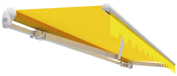 Bei Gelenkarmmarkisen lassen sich mit rapportangepassten Volants und farblich abgestimmten Einfassbändern Akzente in Form und Farbe setzen, passend zum Stil von Haus, Balkon oder Terrasse.