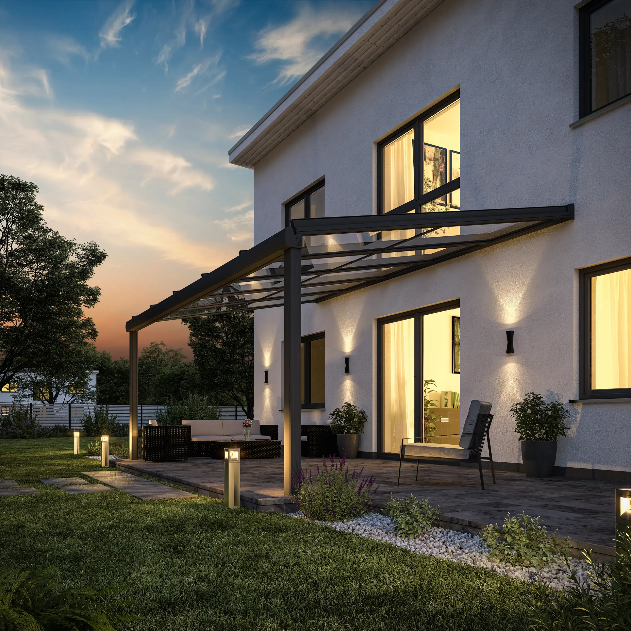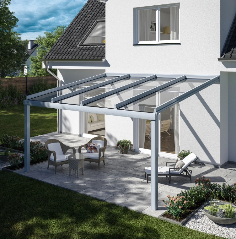 Enjoy more time outdoors: Lewens glass roofs offer reliable rain protection – and can be supplemented with effective sun protection if required. For relaxed comfort all year round.