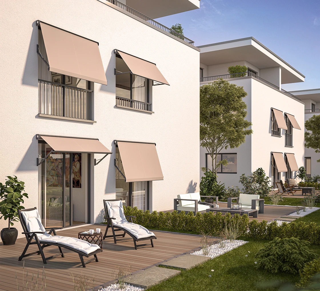 Mit mehr als 300 Dessins und unterschiedlichen Gewebearten lässt sich Ihr Sonnenschutz genau auf Haus, Stil und Bedarf abstimmen.