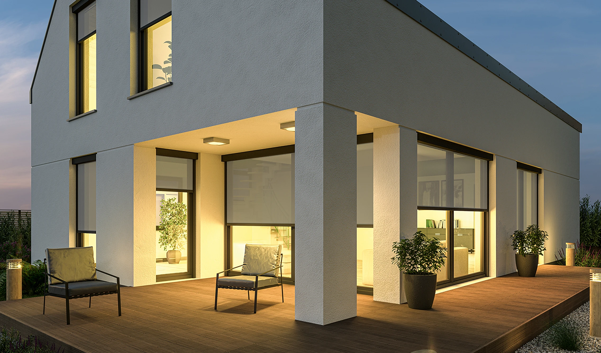 Licht und Schatten perfekt ausbalanciert: Mit Acryl für maximale Abschottung, Screengewebe oder Soltis 92 gegen Sonne bei teilweiser Transparenz. Ob Seil-, offene oder Zip-Führung – die Micro 1060 passt sich jeder Architektur an. Ab Werk motorisiert, optional mit Funk oder Sensor. Für kompaktere Einbausituationen gibt es die Micro 860.