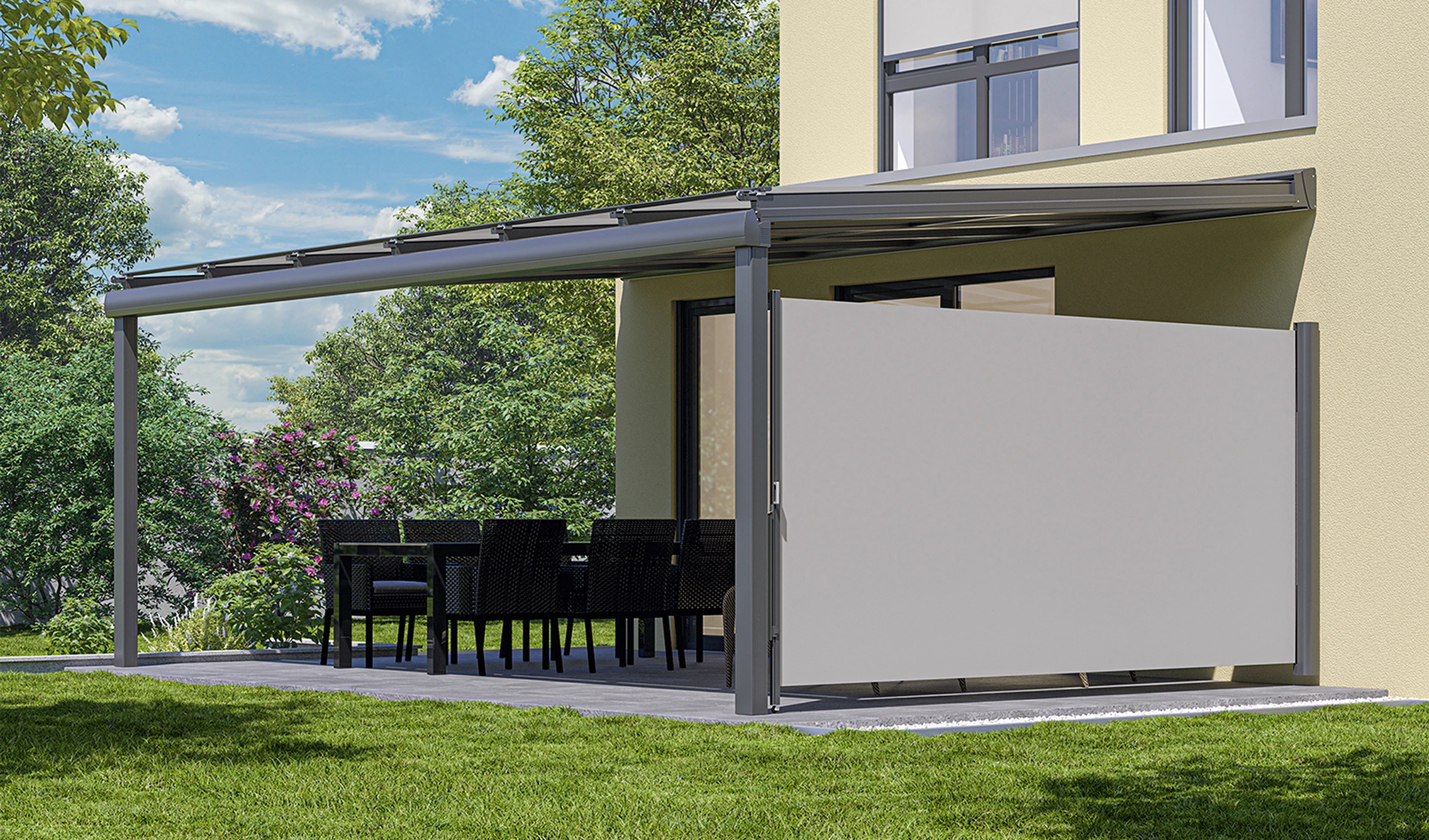 Flexibler Sonnenschutz für Fenster und Balkone – mit 90°- oder 135°-Neigungswinkel.