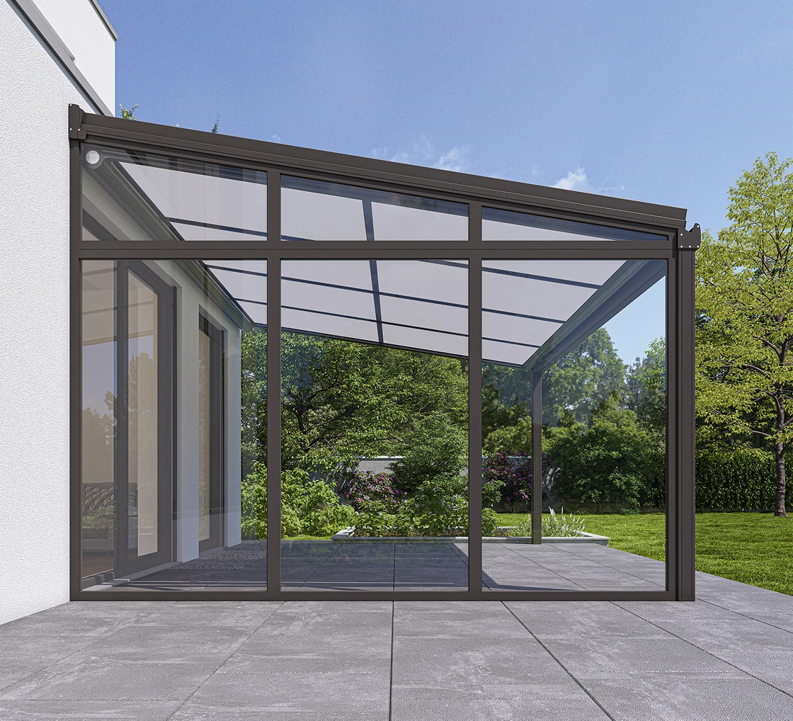 Wenn Wind und Regen draußen bleiben sollen, die Aussicht aber nicht: Die Festverglasung Murano Finestra erweitert Glasdächer um zuverlässigen Schutz ohne Verlust an Offenheit. Als Teil- oder Komplettverglasung bis 500 cm Breite schafft sie eine geschützte Umgebung mit Licht und Weitblick.