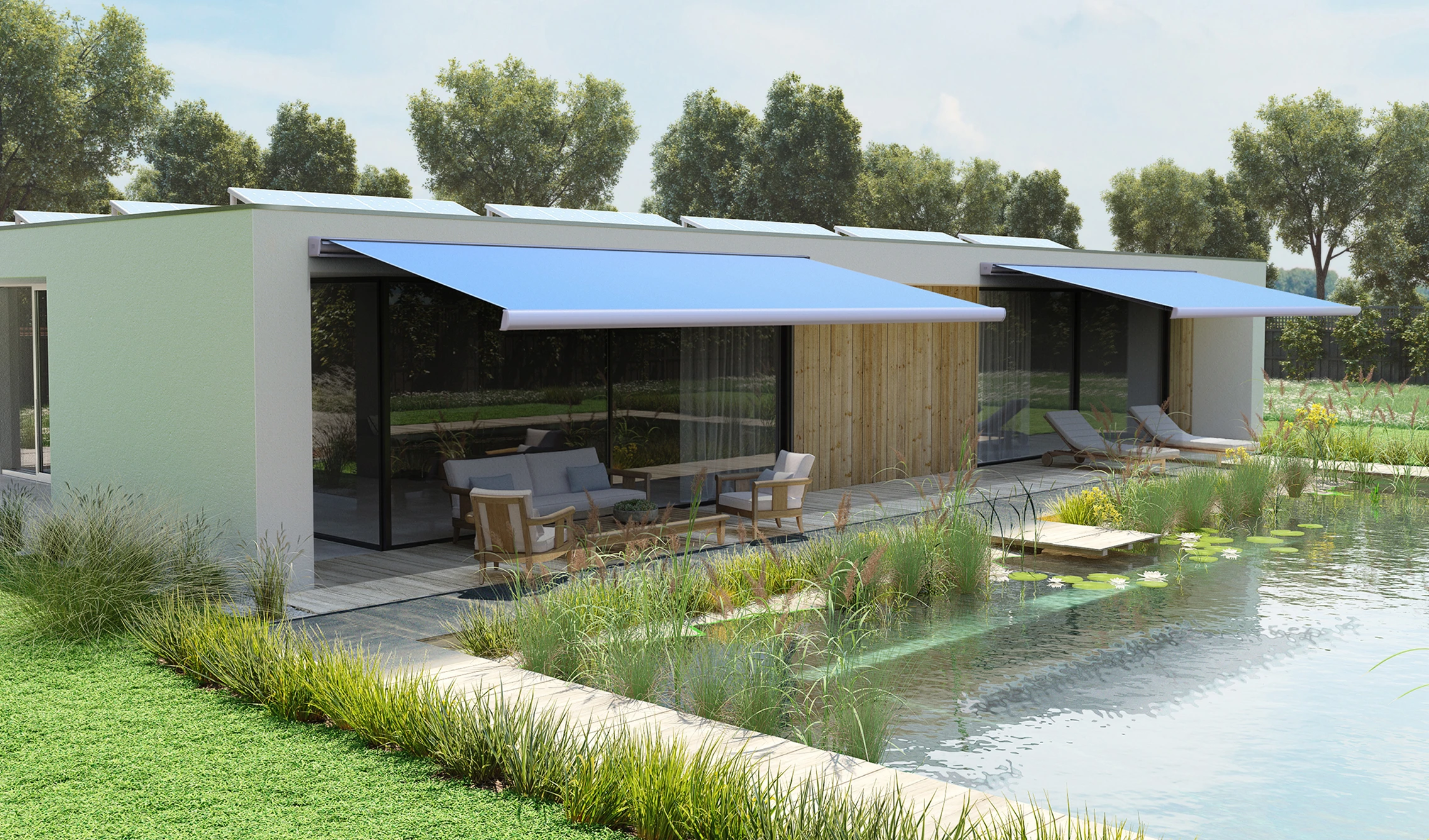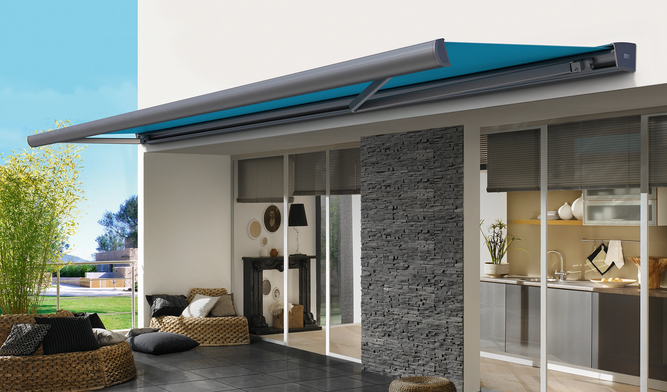 Mit mehr als 300 Dessins und unterschiedlichen Gewebearten lässt sich Ihr Sonnenschutz genau auf Haus, Stil und Bedarf abstimmen.